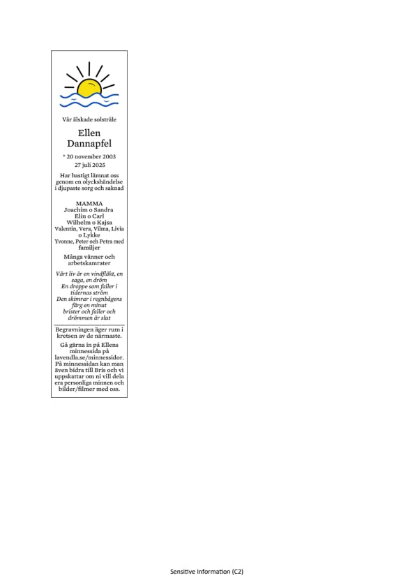 Var med oss och dela hälsningar, bilder och filmer. Tillsammans kan vi återuppleva minnen och fina stunder med Ellen.