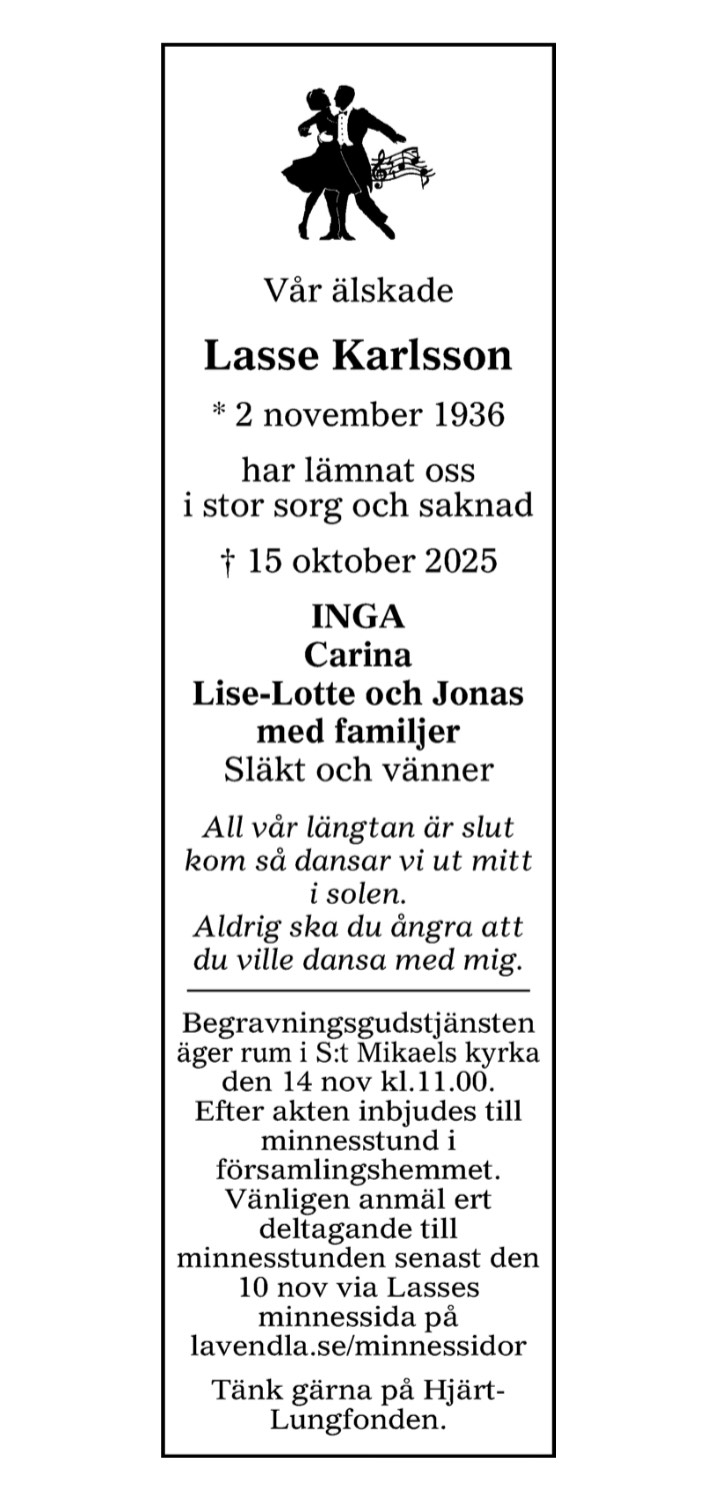 Var med oss och dela hälsningar, bilder och filmer. Tillsammans kan vi återuppleva minnen och fina stunder med Lasse