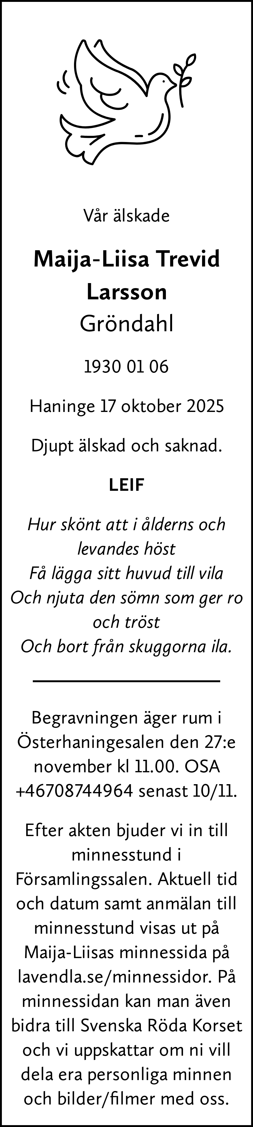 Till minne av Maija-Liisa Trevid Larsson