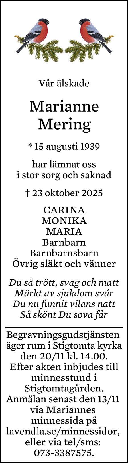Till minne av Marianne Mering