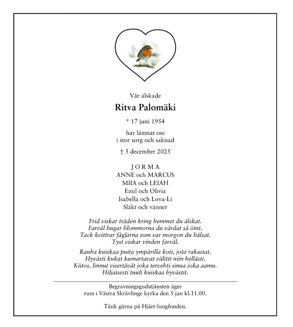 Var med oss och dela hälsningar, bilder och filmer. Tillsammans kan vi återuppleva minnen och fina stunder med Ritva